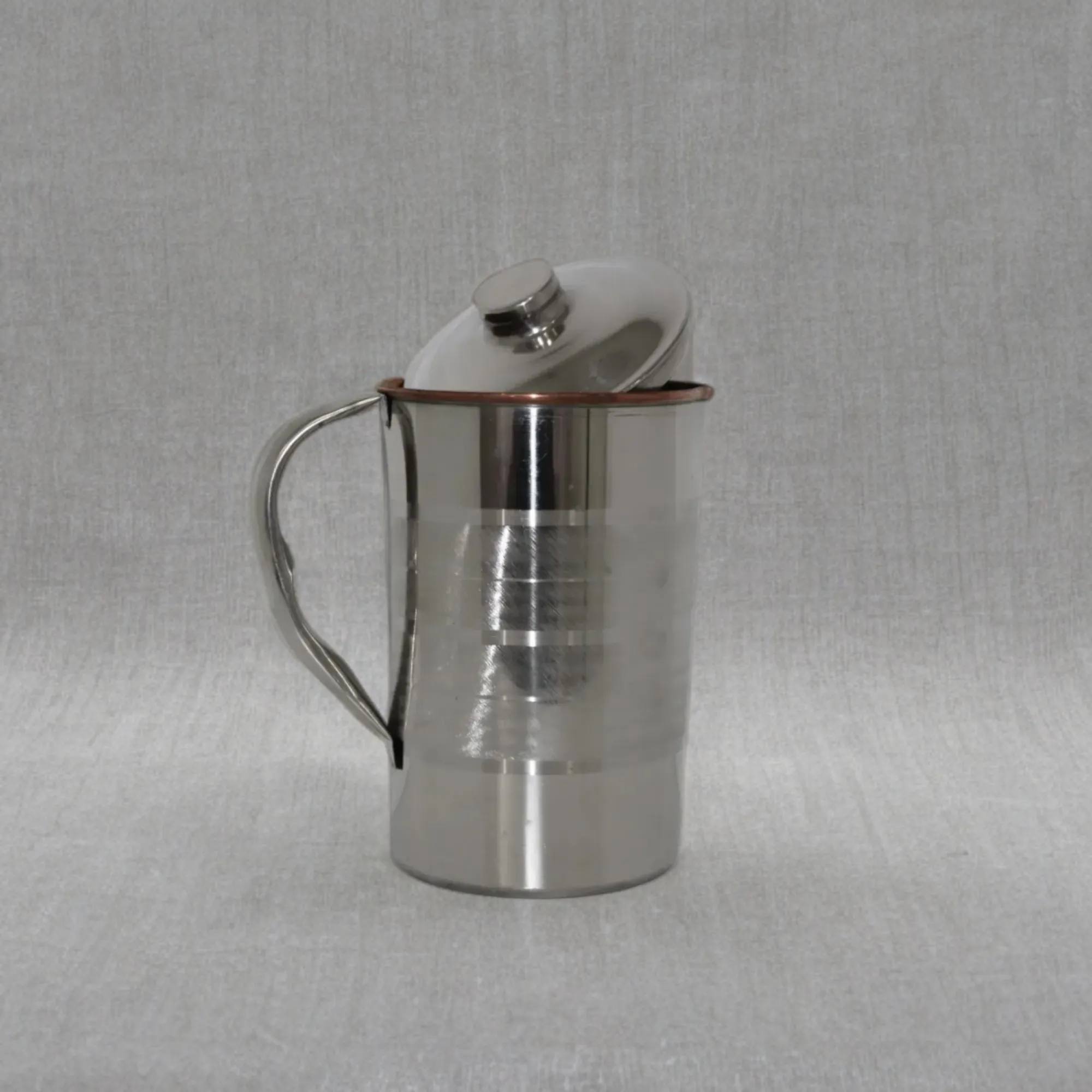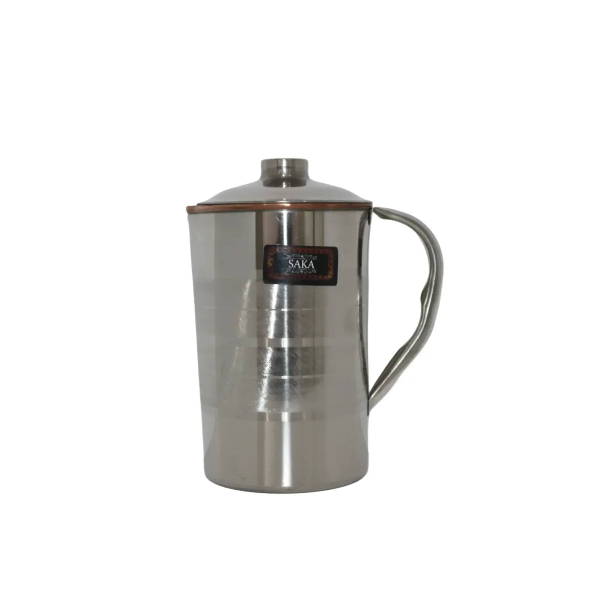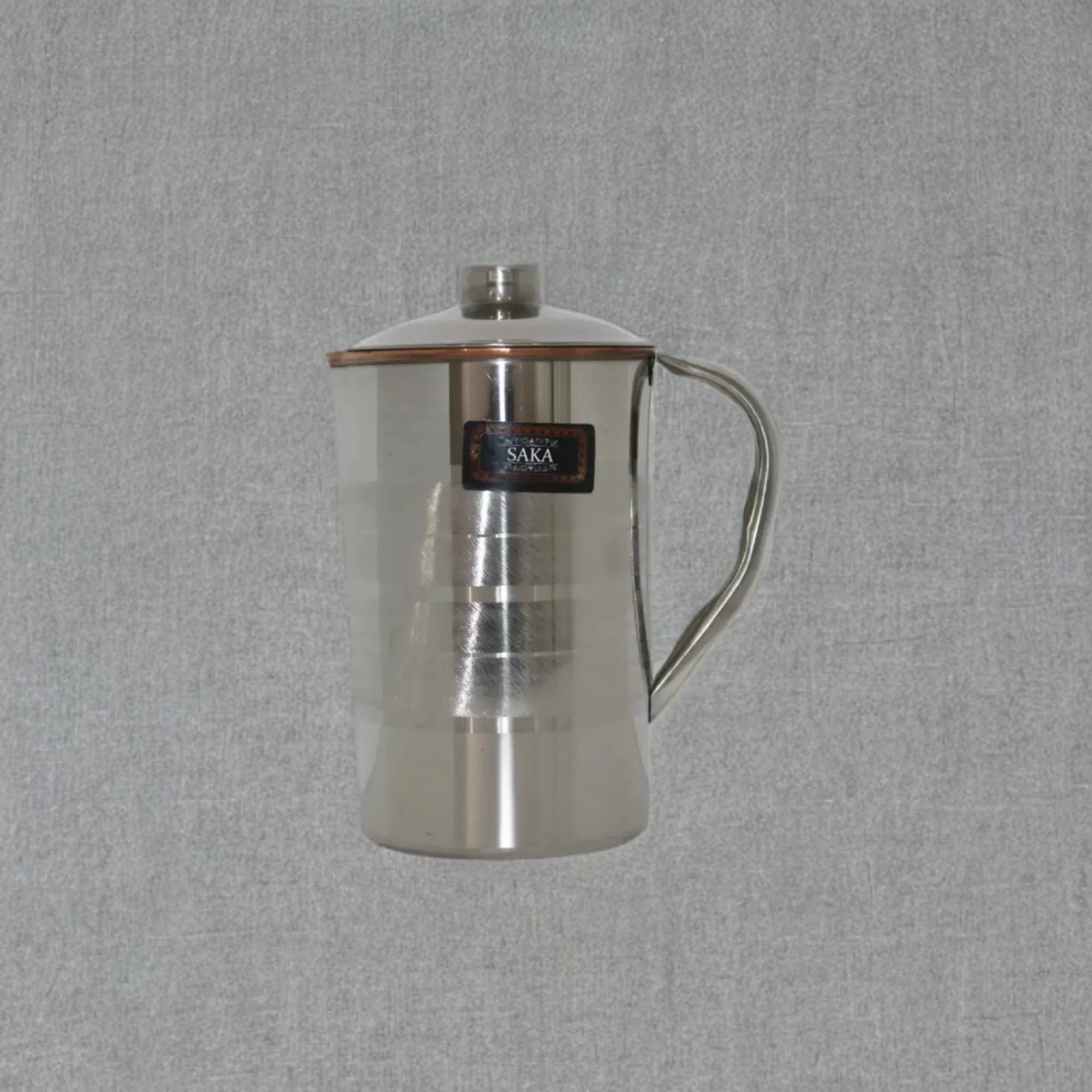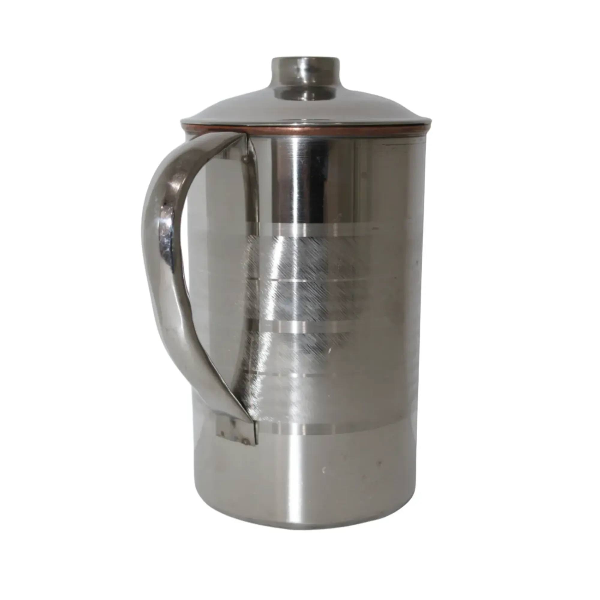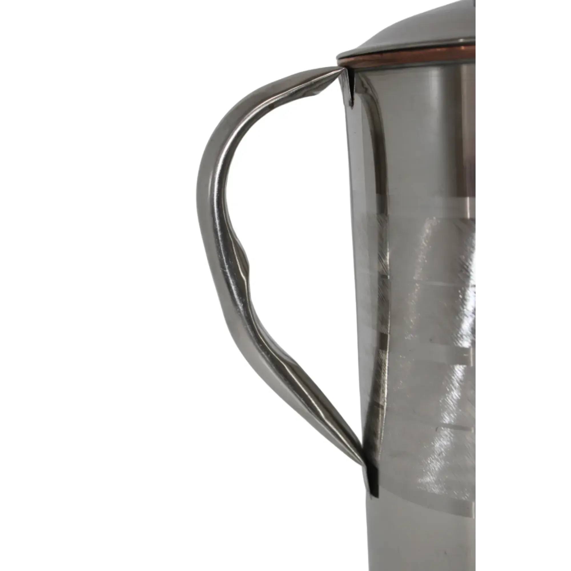 2 L Stainless Steel and Copper Pitcher with Lid Pitcher Water Jug for Ayurveda Health Heavy Duty